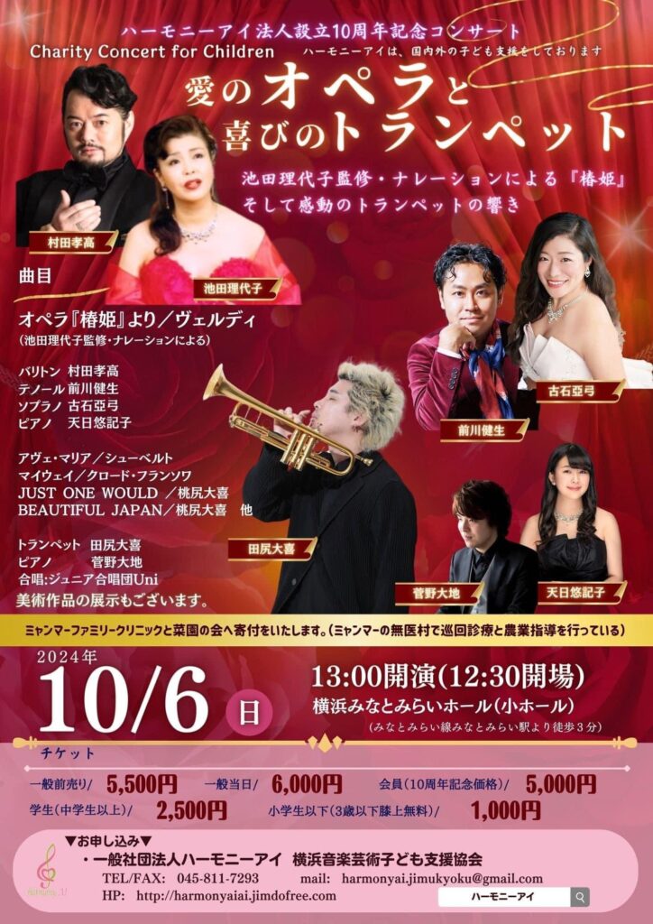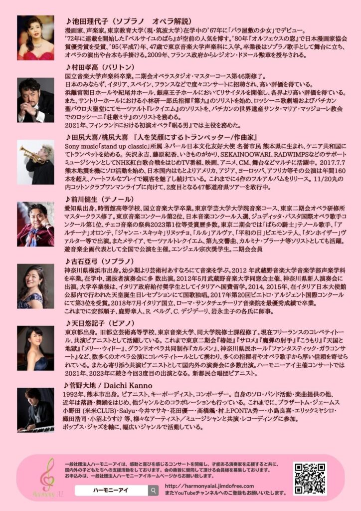 ※「一般社団法人ハーモニーアイは、若き演奏家を応援しつつ、国内外の子ども支援活動を行っている。