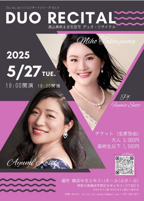 大学時代からの友人(高山美帆)との、完全セパレート形式のリサイタル。